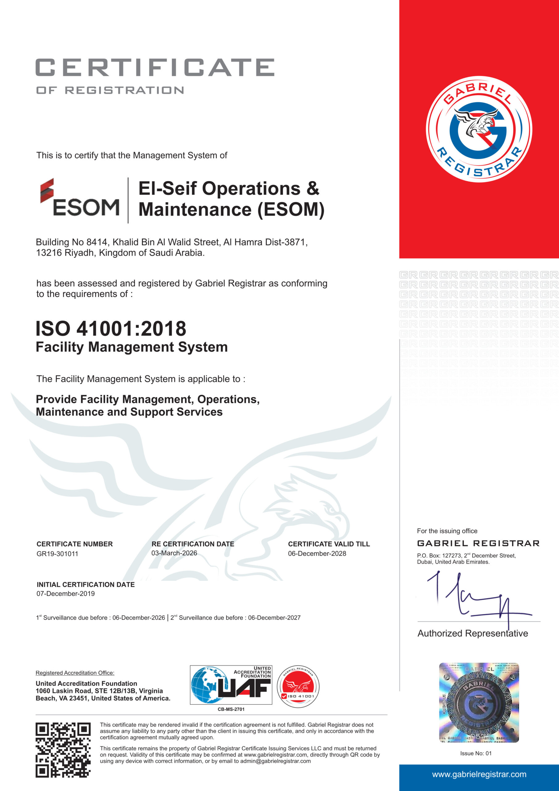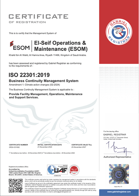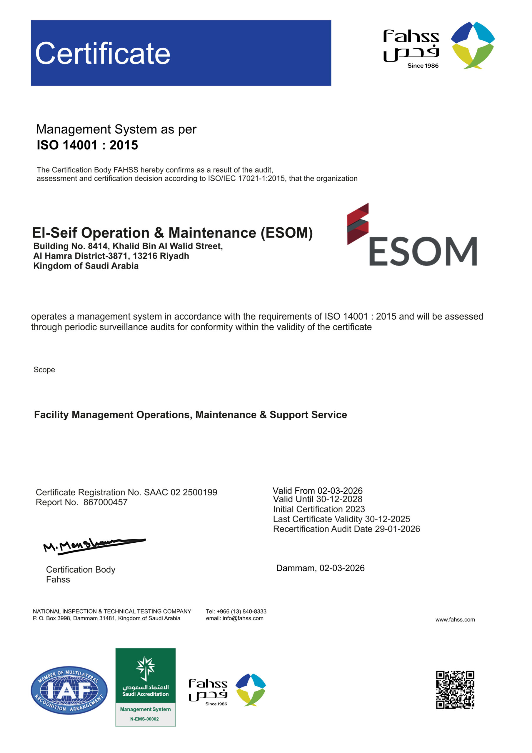 ESOM consistently monitor and improve our Quality Control, Health, Safety and Environmental (QHSE) management systems and processes, in order to provide a safe and healthy workplace for employees and partners.